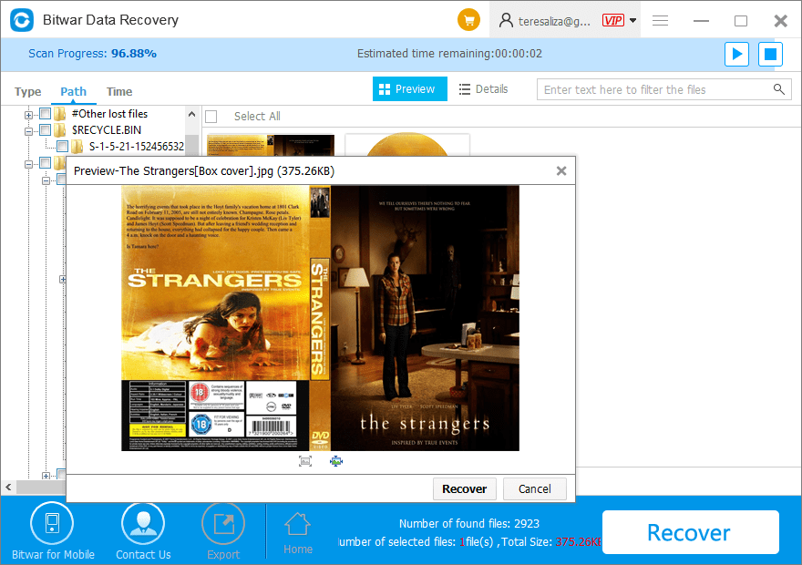 Step 5: Preview the picked up data and then hit the Recover button to save into a separate drive.